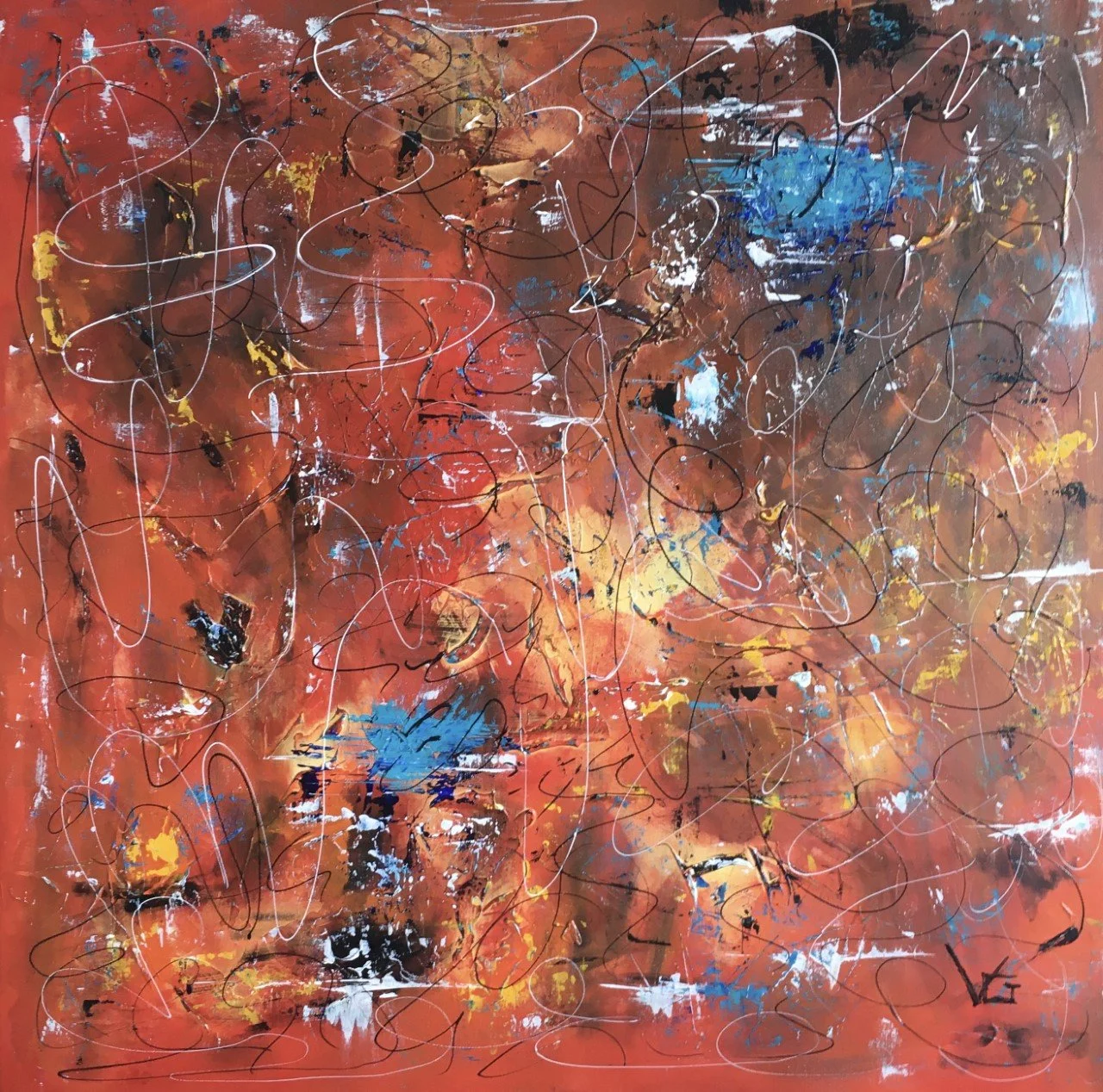 Riscando a VidaAno 2022 - Técnica mista abstrata - Tinta acrílica - 100 X 100 cm Slide 1 Slide 1 (slide atual)